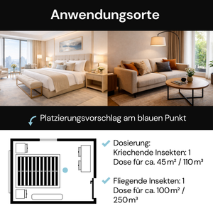 • Dosage (bedbugs): 1 can for approx. 45 m² / 110 m³