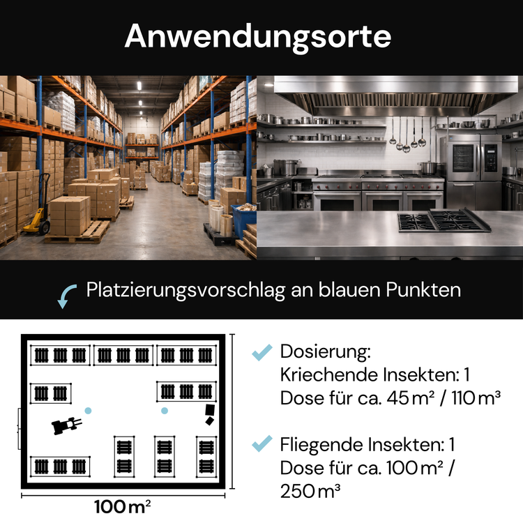 - Insetti volanti: 1 lattina per circa 100 m² / 250 m³